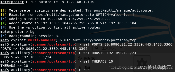 需要说明的 meterpreter 在漏洞利用成功后会发送第二阶段的代码和 meterpreter 服务器 dll,所以在网络不稳定的情况下经常出现没有可执行命令,或者会话建立执行 help之 后发现缺少命令。 连上 vpn 又在内网中使用 psexec 和 bind_tcp 的时候经常会出现这种情况