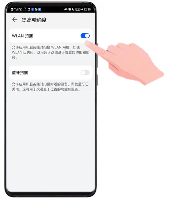 开启WIFI扫描提高定位精度的功能也很简单,这里同样以鸿蒙系统为例讲一下开启方法。