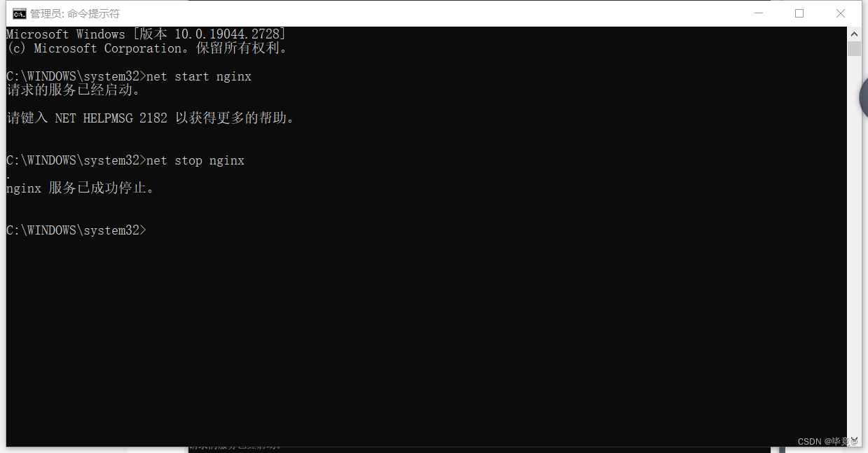 6.输入net start nginx启动nginx,输入net stop nginx停止nginx