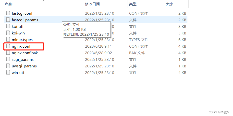 3.打开conf文件夹,再打开nginx.conf文件,进行配置