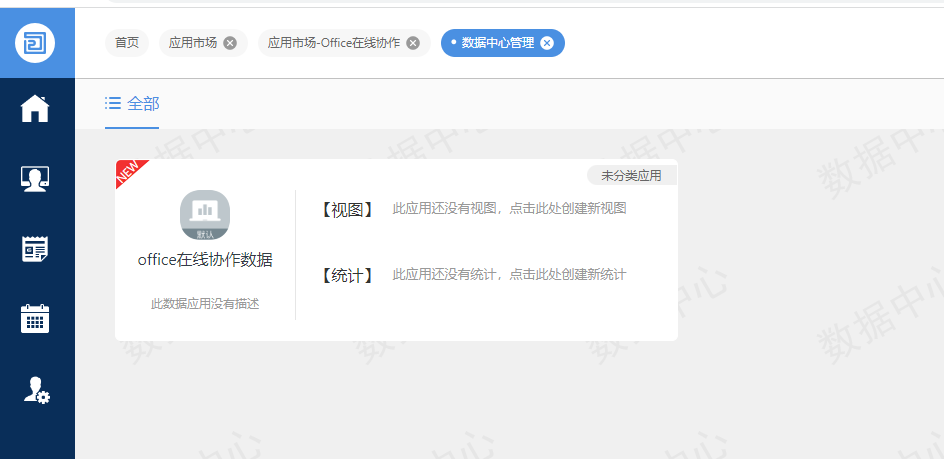 1、以管理员身份登录到O2OA,并且从左上角菜单中打开数据中心