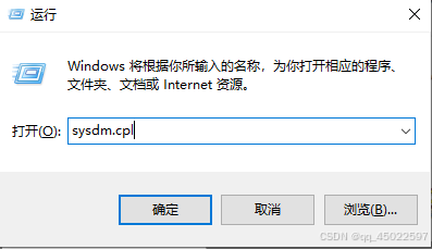 【win+R】键,输入sysdm.cpl,单击【确定】