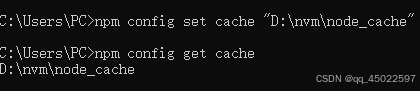 在cmd窗口中输入以下命令(两个路径即是两个文件夹的路径,下载完成npm之后配置)
