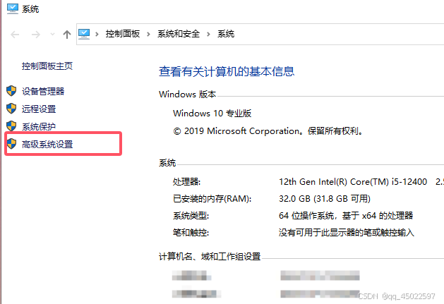 或者 右键“我的电脑” - 【属性】-【高级系统设置】