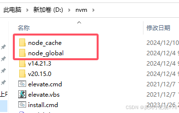 首先在nvm的安装目录新建两个文件夹node_global和node_cache