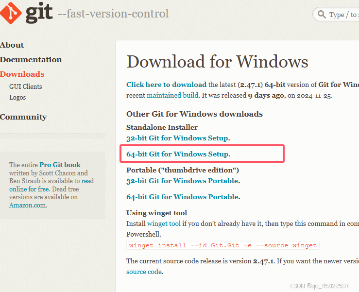 1.2、选择适合自己的git版本,我下载的是下图标出的版本