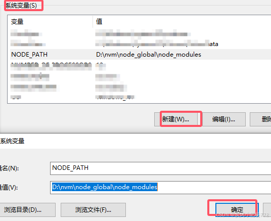 在系统变量 - 【新建】NODE_PATH - 输入node_modules路径,单击【确定】
