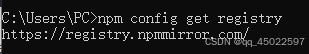 检查是否设置淘宝镜像成功(会返回这个地址表示成功:https://registry.npmmirror.com)