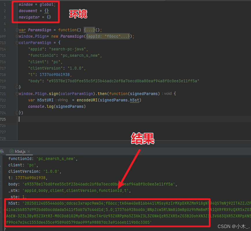提示:这个h5st的的长度会根据环境的不同而改变,环境不同,则h5st的长度也不同,这个大家要注意,我当时就以为长度是固定的,是环境有问题,结果我补了很多很多环境,后来才发现,h5st的长度不上固定的,环境不同长度不同,只要加密方法是对的就行