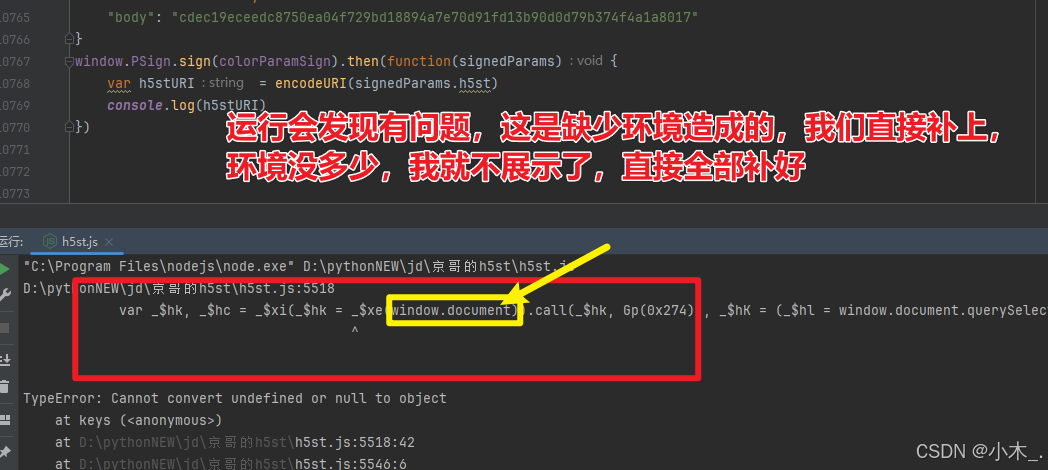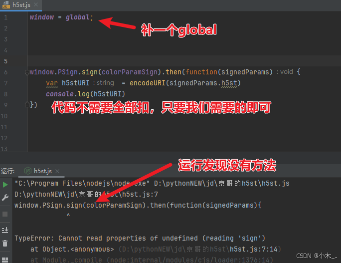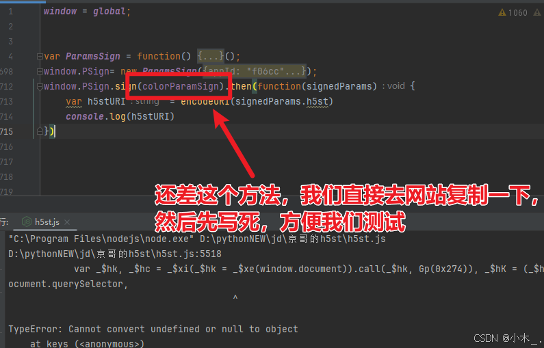 5、只需要扣我们需要的代码即可,然后补一个环境,运行发现没有该方法,我们直接去网站找一下