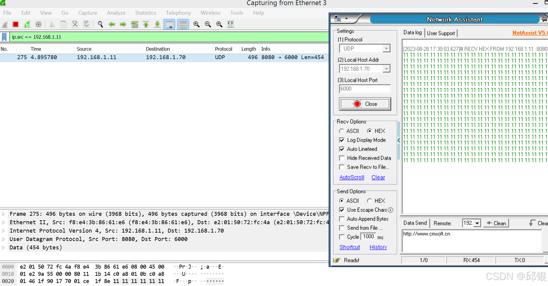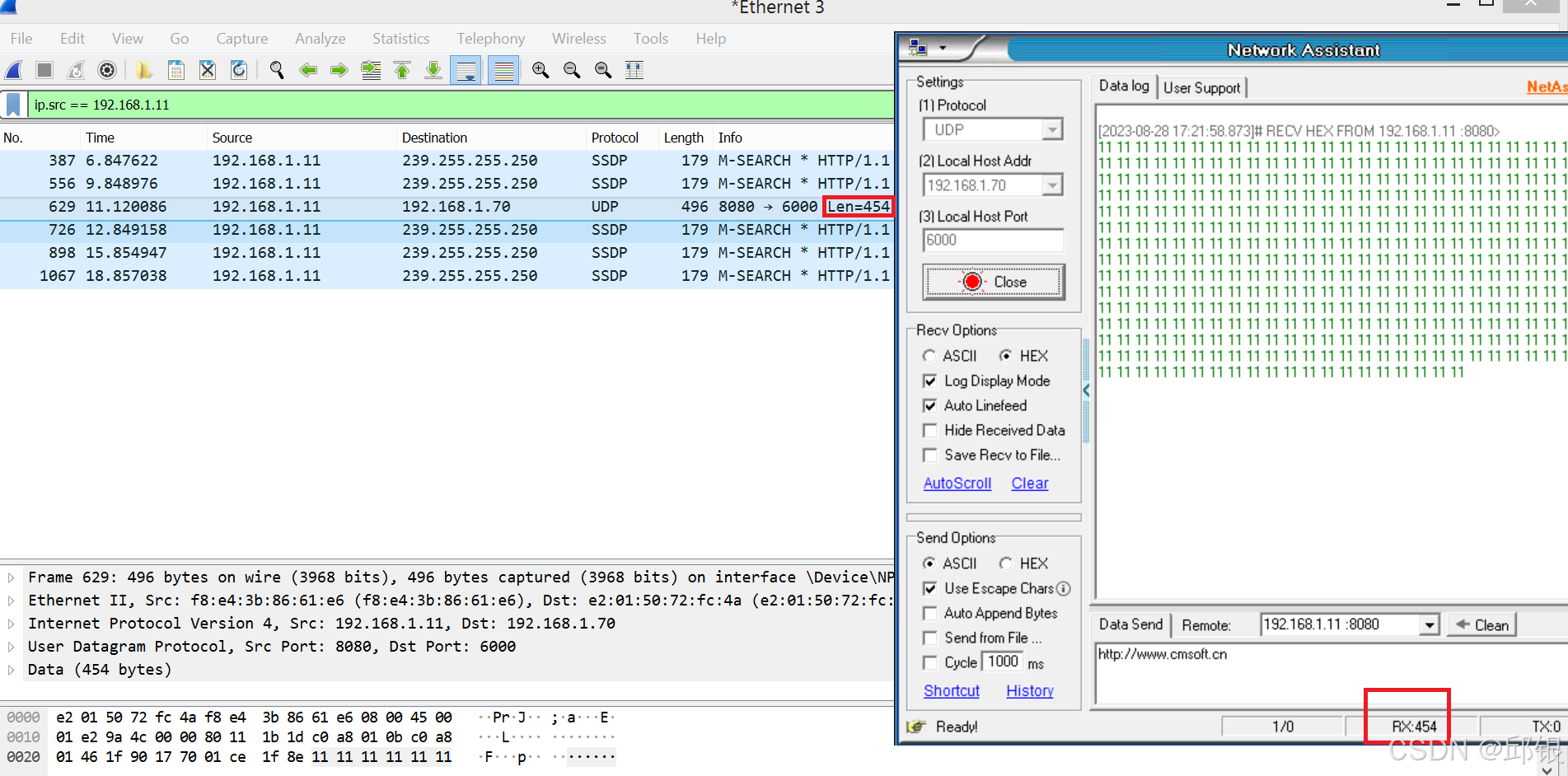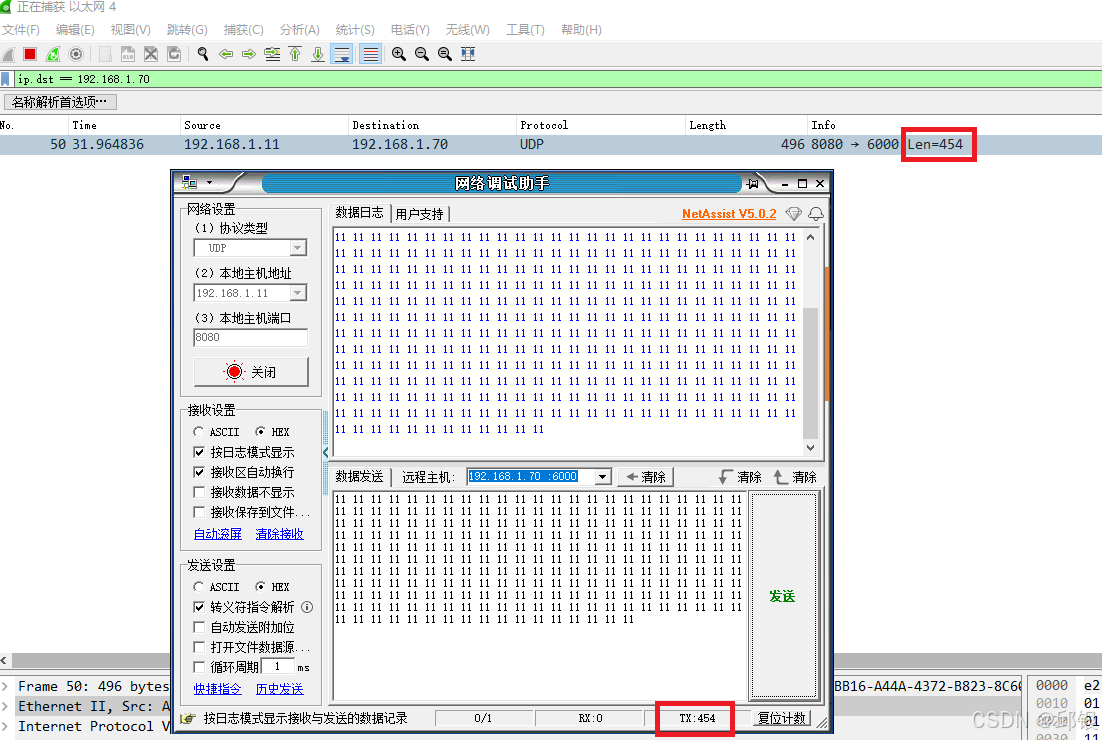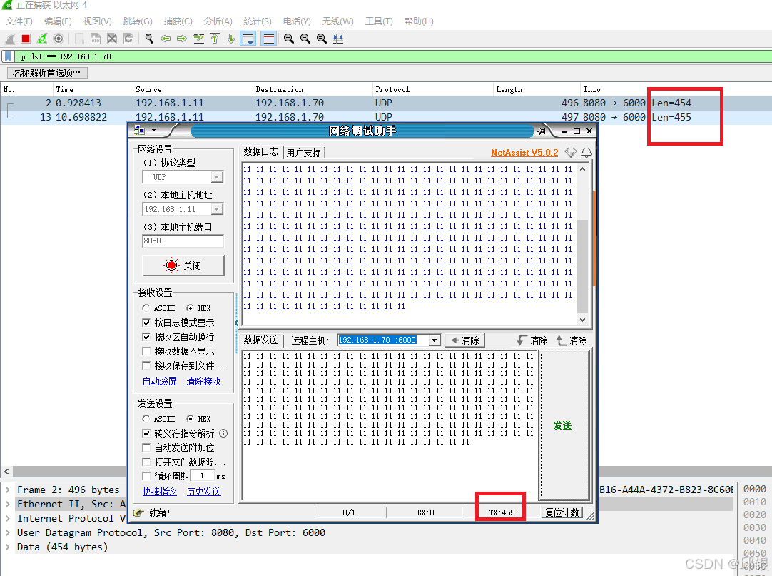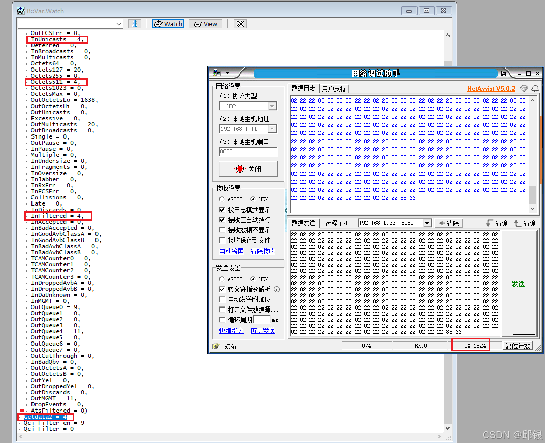 如下图所示,当用助手发送了4帧 456 bytes frame后,counter的计数情况如下图所示: