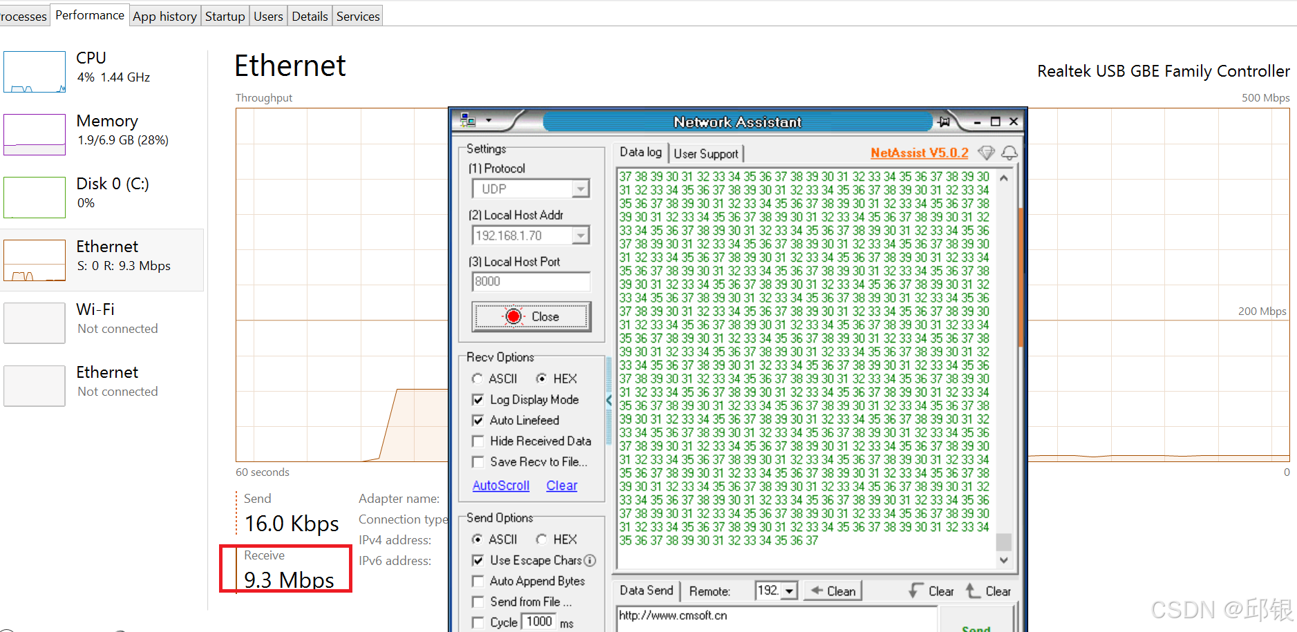 通过iperf工具向Port1中发送带宽为100M的frame,在Port8接收,同时设置Port8的网卡地址为TCAM中指定的MAC Addr。设置FlowMeter的带宽为10M。