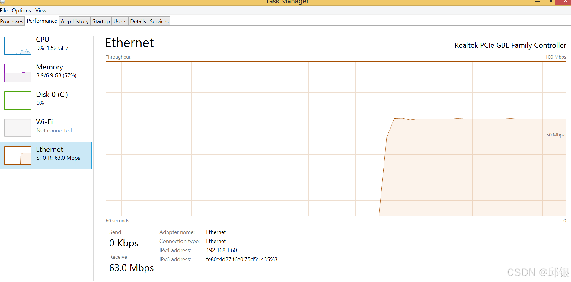 - 若打开Qav,同时设置该Port的queue0的速率限制值为64M,再观察Port口的输出速率: