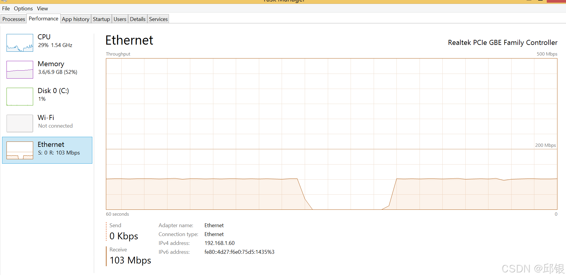 在switch一端通过iperf按照100M的速率发送报文,如下图所示: