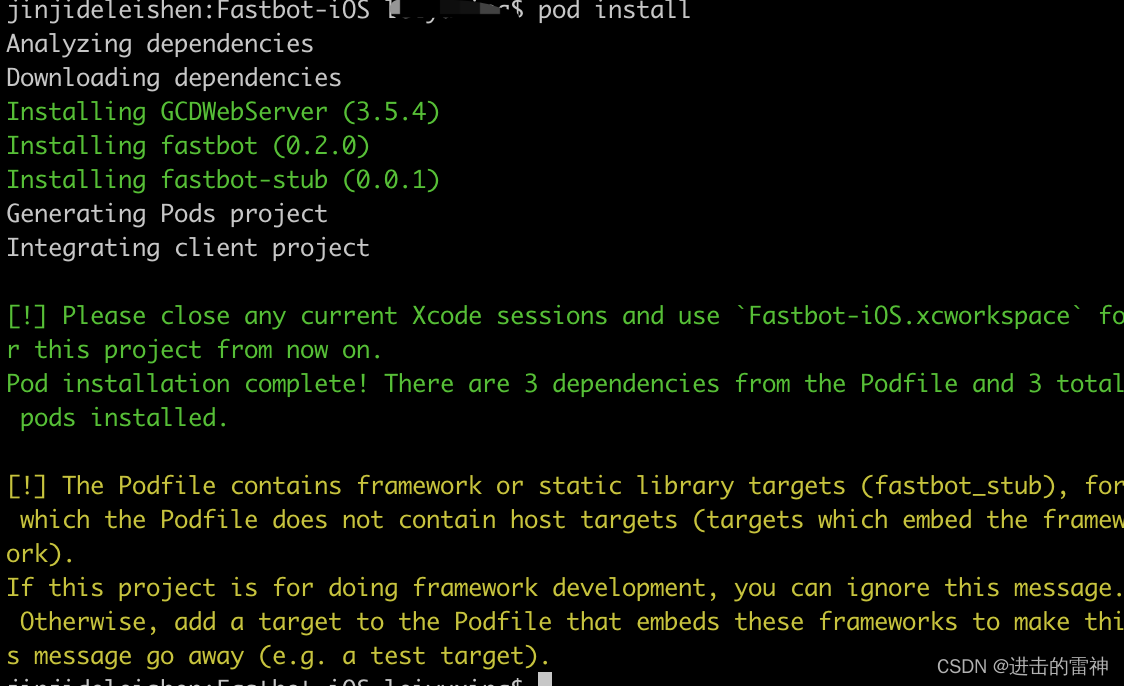 3、然后执行命令:cd Fastbot-iOS && pod install —repo-update
