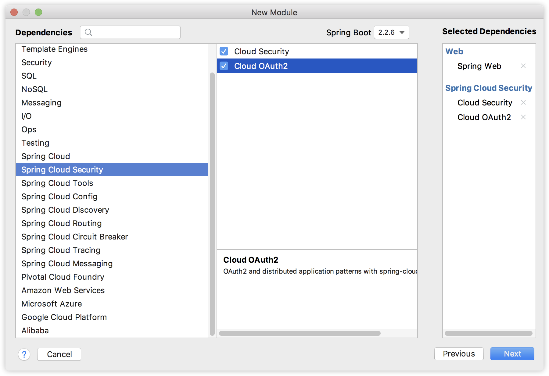 首先我们搭建一个名为 auth-server 的授权服务,搭建的时候,选择如下三个依赖: