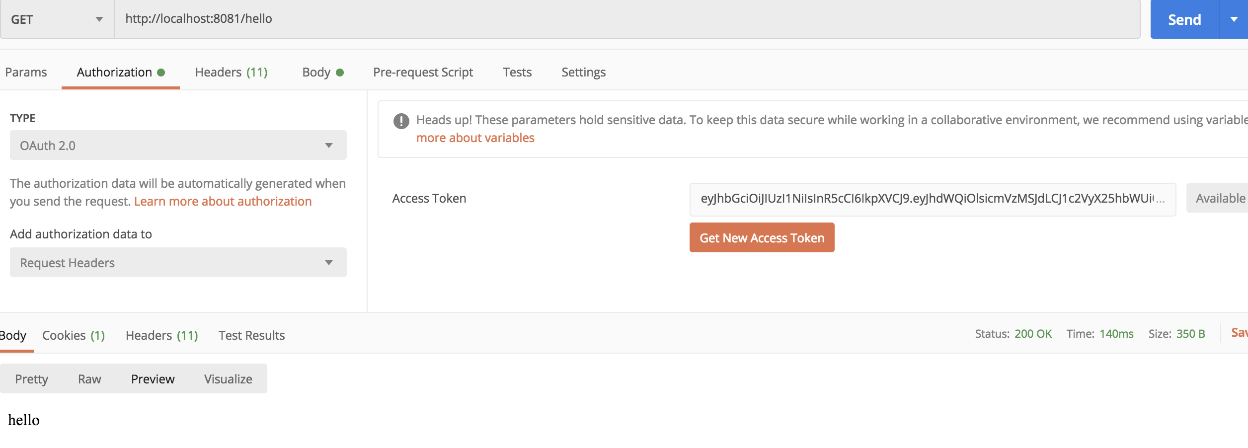 这段配置跟前面的类似,主要是 SecurityScheme 不同。这里采用了 OAuthBuilder 来构建,构建时即得配置 token 的获取地址。