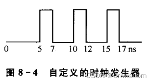 时钟波形mclk周期是10ns, 占空比是20%, 第一个跳变沿出现在5ns之后,且在第一个跳变沿之后值为假(0);