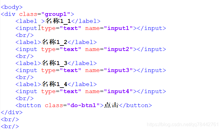 通过这种方式,获取,如下,group1下的input[name=input1]的值,等等。