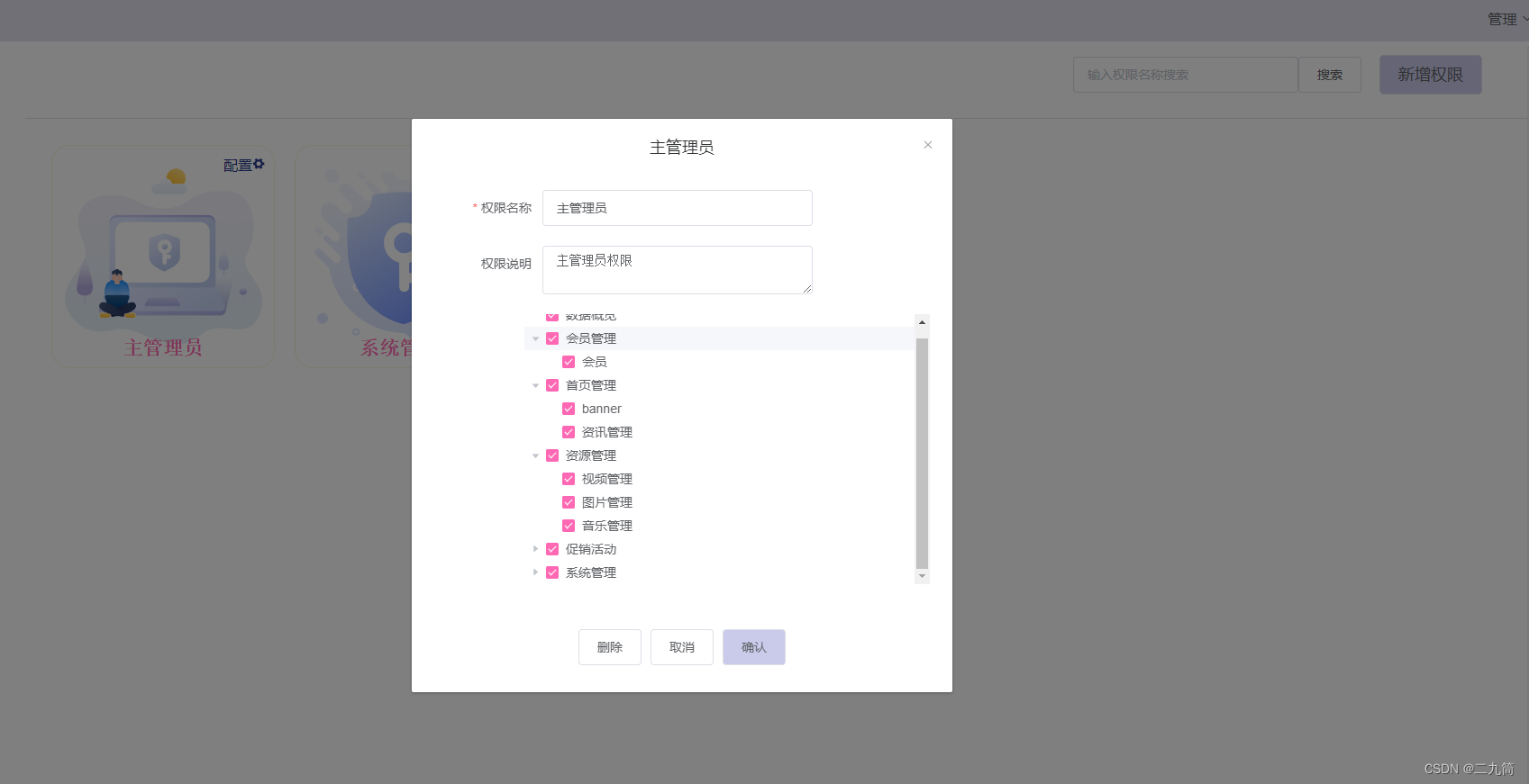 管理后台菜单权限分角色控制,前端+后端+ER设计