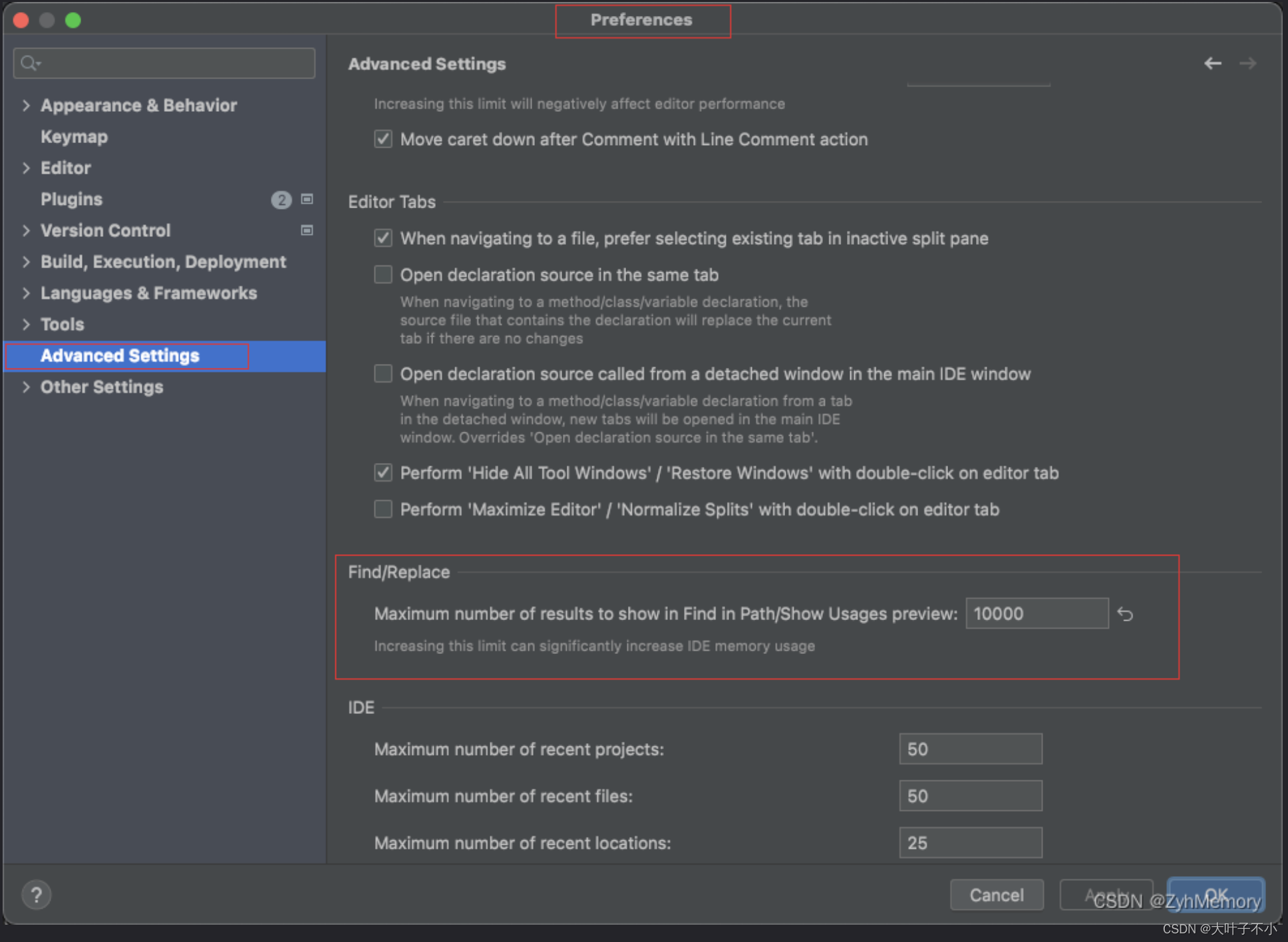 版权声明:本文为博主原创文章,遵循 CC 4.0 BY-SA 版权协议,转载请附上原文出处链接和本声明。原文链接:https://blog.csdn.net/ZyhMemory/article/details/116265194。在Registry中找到ide.usages.page.size进行修改即可,我这里修改的是10000。idea全局搜索默认只显示100个,超出显示100+,不过谁能注意