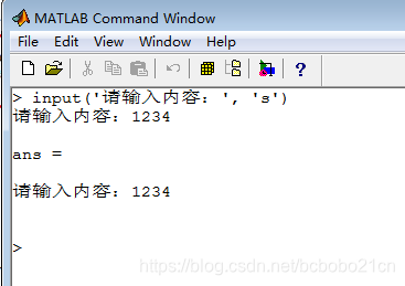 x = input(prompt)输入的东西当成数字或者矩阵;str = input(prompt,‘s’)输入的东西当成字符串存起来;INPUT 的第一个参数必须为字符向量。x = input(‘what’)这个地方使用单引号;下面做一些操作;目前matlab是免安装版的,input函数可能有问题;先记一下;请屏是clc;...