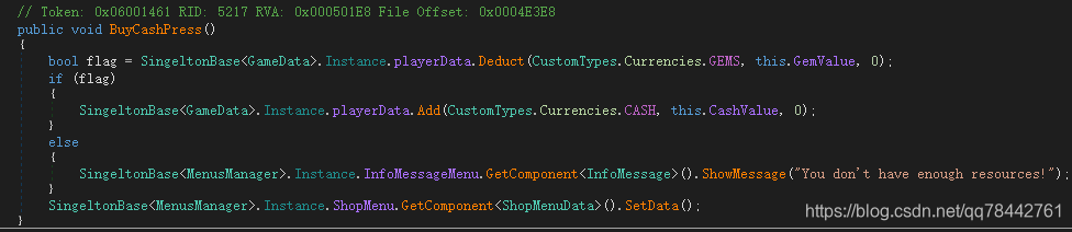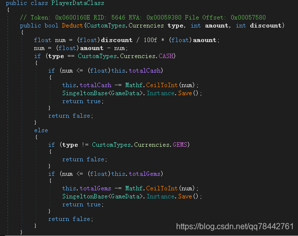 这里以某C#写的Android APP为例。如下提取这个dll使用dnSpy进行修改:使用Ctrl + Shift + K进行全局搜索,搜索cash从中可以看到Deduct为减少,Add为添加。鼠标移动到Deduct上然后点击:从中可以看到都是与cash相关,将所有的-和-=改为+与+=右键然后点击编辑IL指令:将其改为add,全部修改后如下:然后点击保存:再将此dll放回以前的位置,然后再签名,