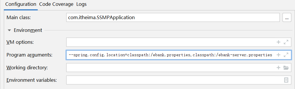 或者还可以使用如下格式来玩这个操作,就是将配置不写在配置文件中,直接写成一个字符串数组,传递给程序入口。