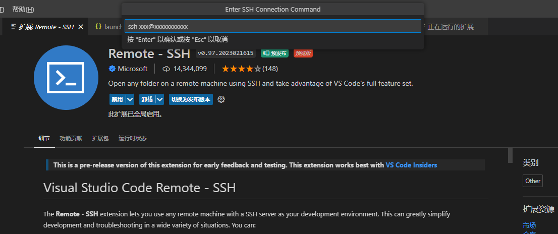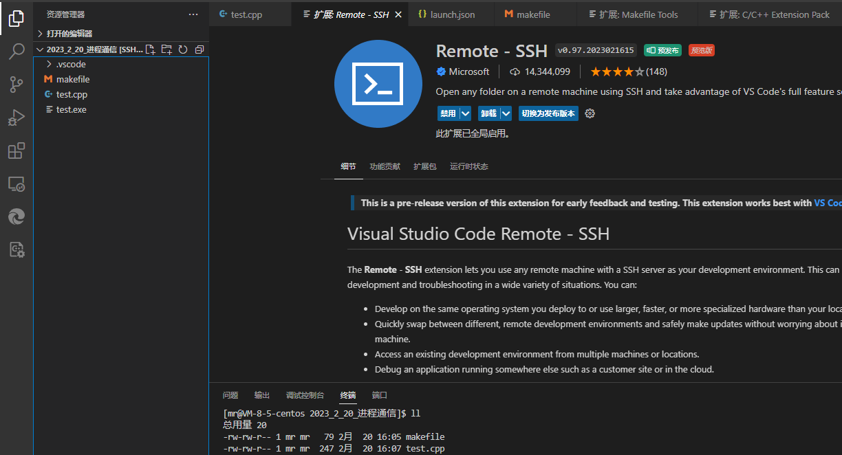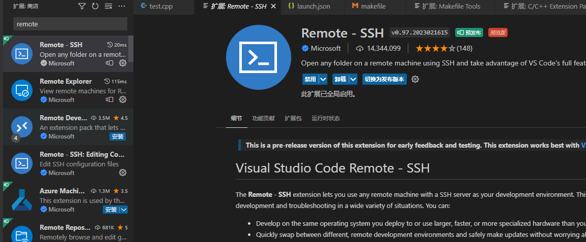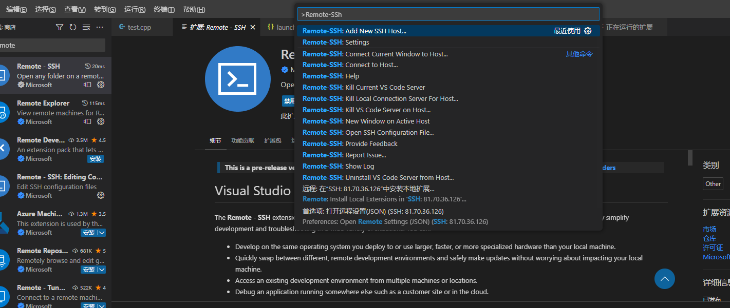下载完后打开,点击插件,搜索remote - SSH 直接安装就行