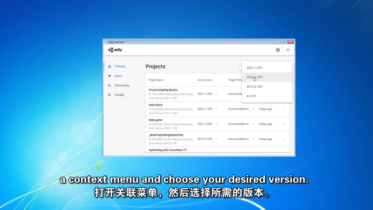 您需要下载并安装Unity 2021.1或更高版本