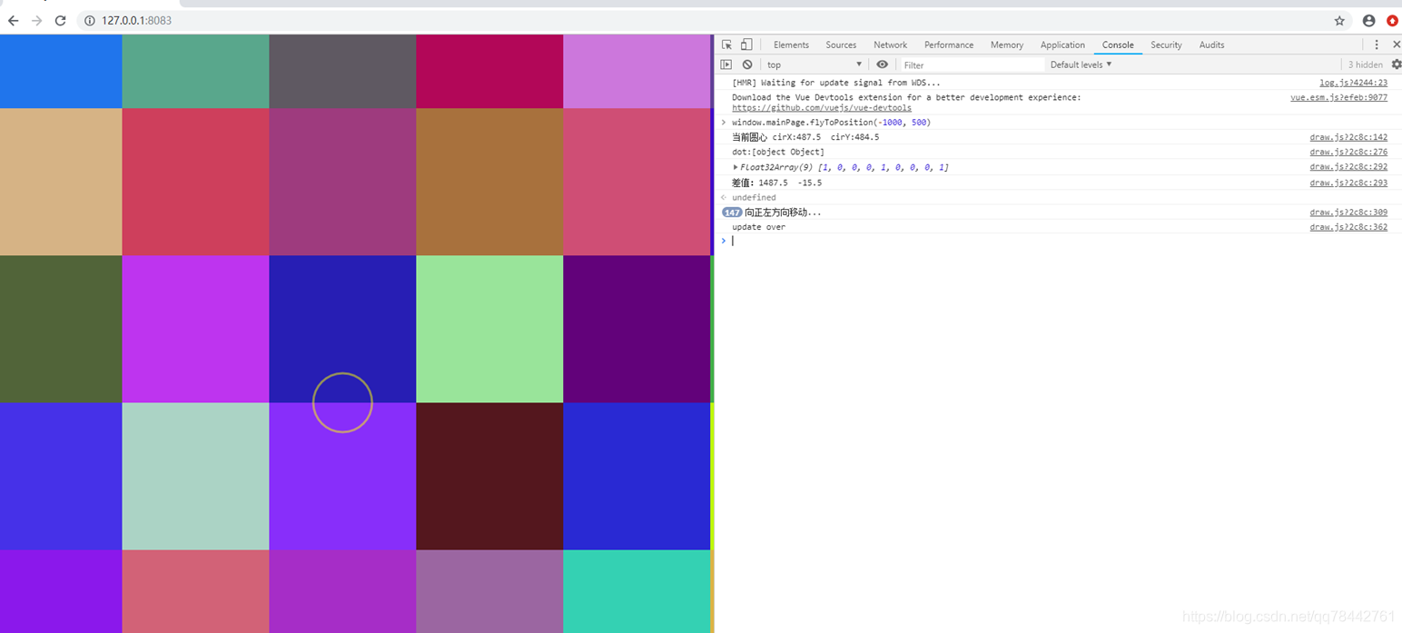 此处是在控制台中输入了window.mainPage.flyToPosition(-1000,500),他是经过平移过去的。整个坐标盘是这样的:这里使用two.bind(‘update’,function(frameCount){})用于平移时的绑定跟新,当平移结束后,使用two.unbind(‘update’);平移相关的代码:export function flyTo({x, y}){wate