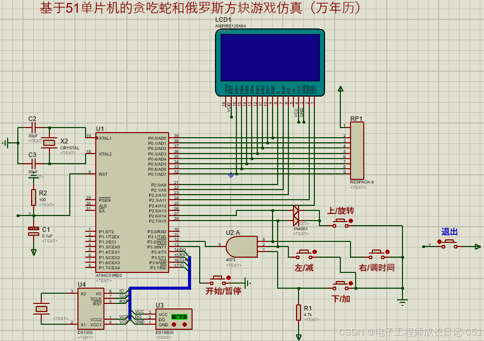 仿真设计|基于51单片机的贪吃蛇和俄罗斯方块游戏仿真(万年历)
