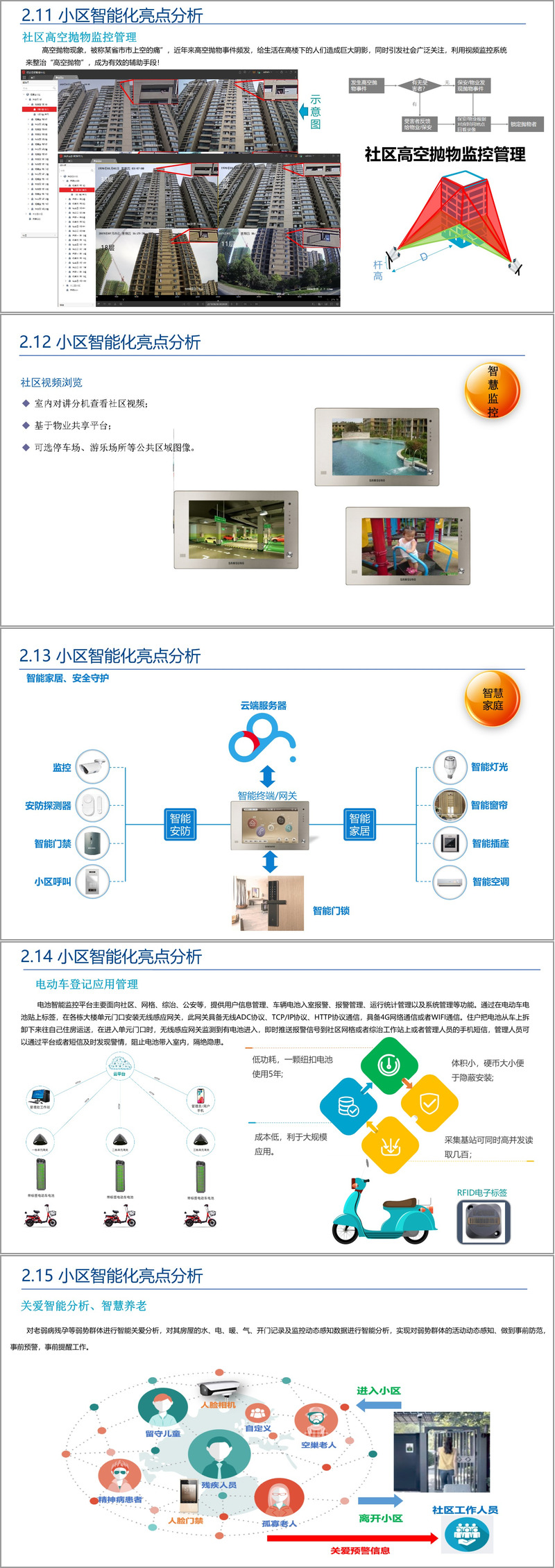 此外,方案还涉及电梯五方通话、智能梯控、高空抛物监控、电动车电池管理等特色功能,全方位保障社区安全与便利。